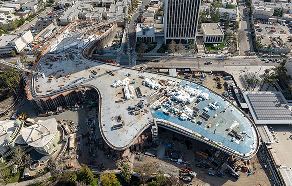 Under construction, Lucas Museum of Narrative Art, Los Angeles, California (photo by Hunter Kerhart Architectural Photography)