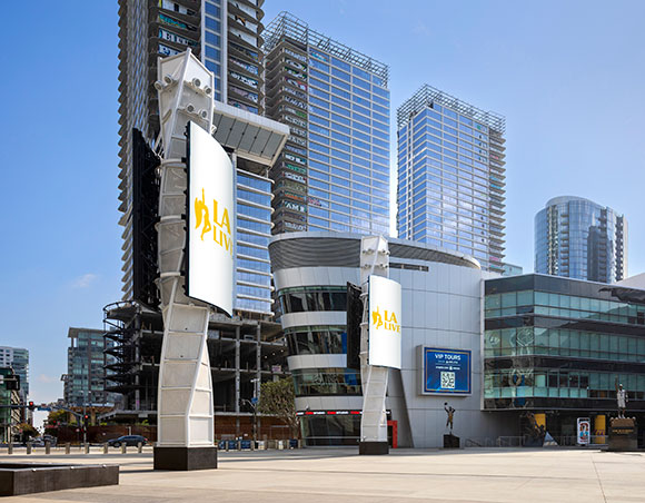 As the name describes literally, L.A. LIVE is a premiere destination for live entertainment in Los Angeles, owned and operated by AEG, a global sports and entertainment company. Between Crypto.com Arena (home of the Los Angeles Kings and Lakers) and Peacock Theater, and adjacent to the Ritz-Carlton, JW Marriott, and the L.A. Convention Center—sits Chick Hearn Court.