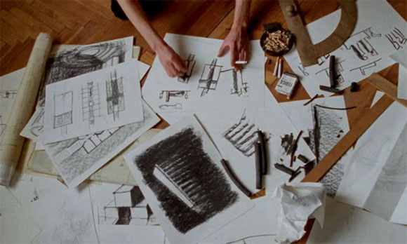 Lastly, if the actor, Adrien Brody, is going to use architect’s drafting tools, he should use them correctly, holding them, drawing with them. It’s like watching a movie where the assassin holds his gun upside down. And I don’t know many colleagues that draw with fat sticks of black charcoal. Artistic-looking on screen, yes, but practical?